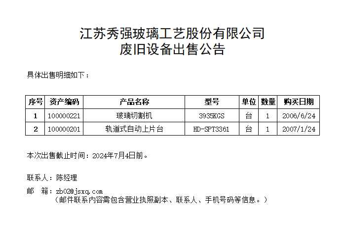 秀強(qiáng)股份采購1臺2毫米鋼化爐項目澄清公告