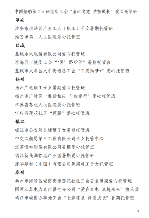 近日,在江蘇省總工會(huì),江蘇省衛(wèi)生健康委員會(huì)聯(lián)合發(fā)布的“關(guān)于2023年度全省‘巾幗情,繪愛心,助成長'職工子女托管托育服務(wù)活動(dòng)情況通報(bào)”中。秀強(qiáng)暑期托管班脫穎而出,榮登金榜。